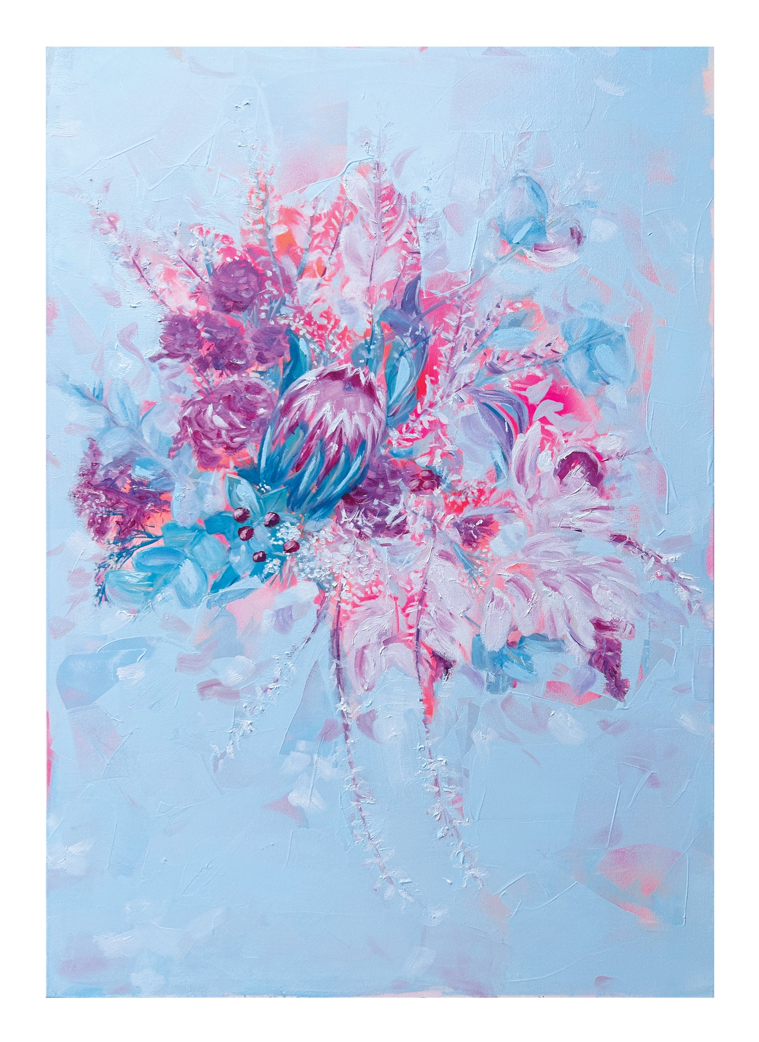 Native Australian Bouquet, using expressive stokes and bright colours in the background for a modern look and to bring out the flowers in the foreground.